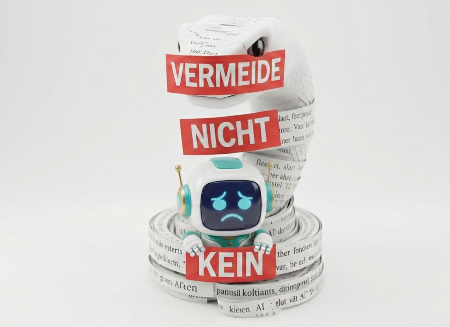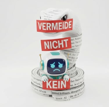 Die Verbots-Sinnflut: Wenn du 80 Wörter verbietest, weicht die KI auf künstlichen Ersatz-Wortsalat aus. Das Ergebnis liest sich wie ein hölzernes Rätsel.