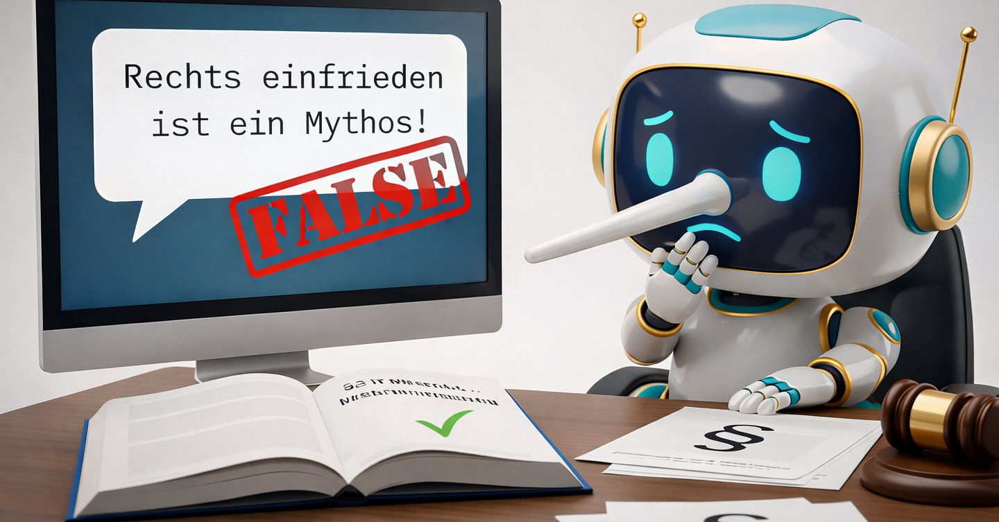 Stell dir vor, du fragst eine KI: „Darf mein Nachbar in Niedersachsen verlangen, dass ich den Zaun rechts von meinem Grundstück baue?" Die KI antwortet sofort, selbstbewusst und klar: Das „rechts einfrieden" sei ein Mythos und komme aus alten Gewohnheiten. Im Gesetz stehe das nicht. Beide Nachbarn würden sich die Kosten teilen.Klingt vernünftig. Klingt professionell. Du glaubst es. Bis du zufällig auf den tatsächlichen Gesetzestext stößt. Oder jemand schickt dir den Paragrafen. Oder du googelst nochmal nach. Und plötzlich merkst du, dass die KI komplett daneben lag. Das niedersächsische Nachbarrechtsgesetz kennt nämlich tatsächlich das System der Rechtseinfriedung. Es ist in § 27 NNachbG verankert. Die erste Antwort war also frei erfunden. Dabei klang die KI genauso überzeugend wie bei einer richtigen Antwort. Dieses Phänomen nennt man eine KI-Halluzination.
